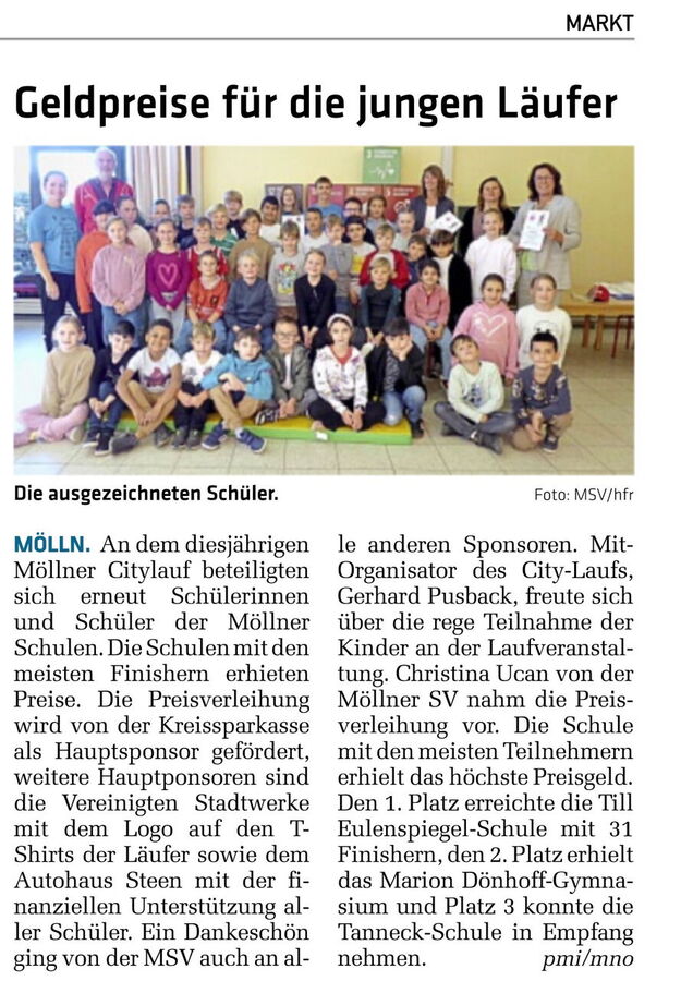 Auch beim diesjährigen Citylauf haben die Kinder der TES ihre Begeisterung für das Laufen gezeigt. Als Schule mit den meisten teilnehmenden Läuferinnen und Läufern belegten wir erneut den ersten Platz. Wir freuen uns über den Gewinn eines Preisgeldes in Höhe von 100 €.
