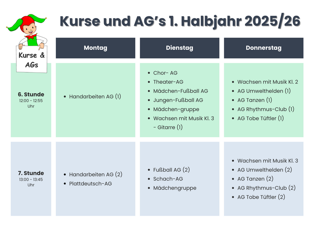 Informationen zu unseren aktuellen Kurs- und AG-Angeboten