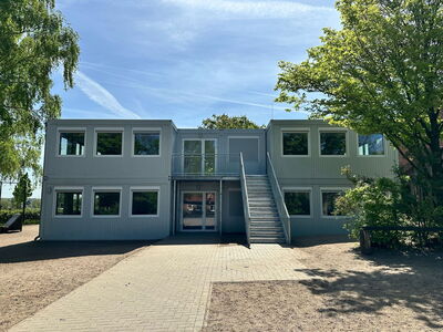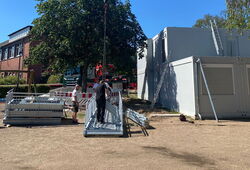 - Der Modulbau wurde in den Sommerferien um eine weitere Etage erweitert. So erhält unsere „Baumhöhle“ im Schuljahr 2024/25 zwei neue Räume. Diese bieten zusätzlichen Platz für den Unterricht, unsere pädagogische Arbeit sowie die Betreuung im Offenen Ganztag.